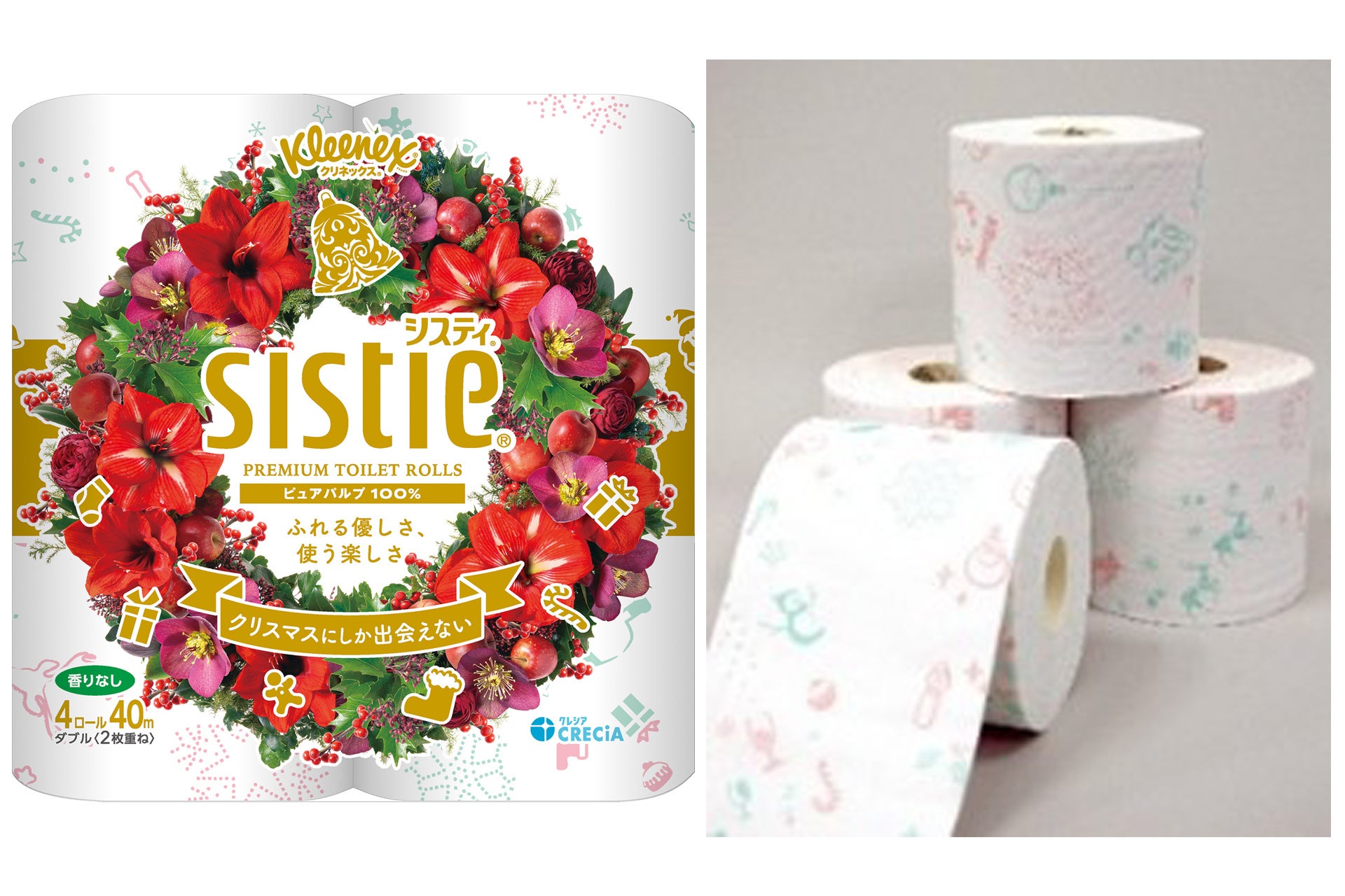 日本製紙クレシアでは、毎年この時期にクリスマスモチーフを取り入れたティシューやトイレットロールを展開しています。今年は第一園芸が監修を担当し、冬の赤い花々を中心にしたクリスマスリースをデザイン。まるで本物の花を飾ったかのような華やかさの、ホリデーシーズンのおうち時間を彩るアイテムが誕生しました。