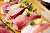 ・黒毛和牛ステーキ、黒毛和牛のローストビーフ、炙り鶏寿司、牛ハラミの炙り寿司、牛カルビの炙り寿司、牛タンの炙り寿司、桜刺しの握り、合鴨ロースの握り、ローストビーフの握り 以上9点の食べ放題