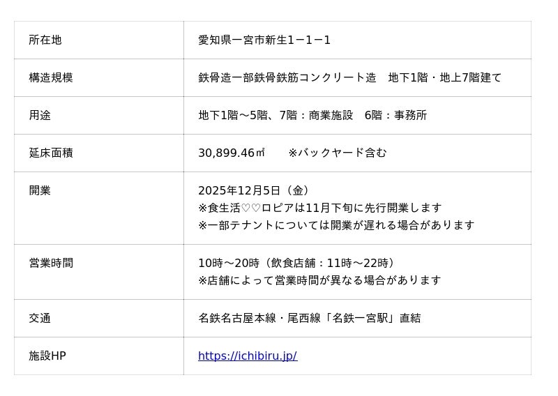 名古屋鉄道がリニューアルを進めている名鉄一宮駅直結の「イチ*ビル」は、バラエティ豊かな40店舗が集い、2025年12月5日(金)10時に全面開業します。