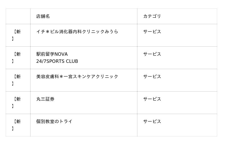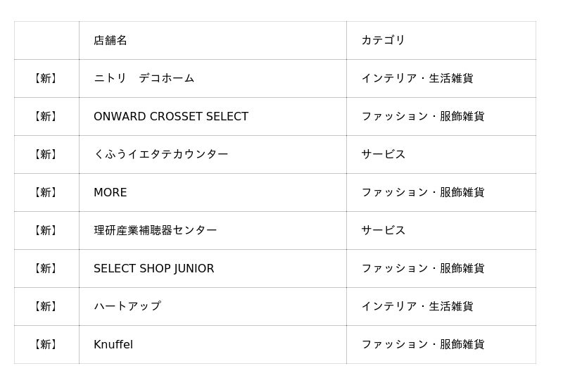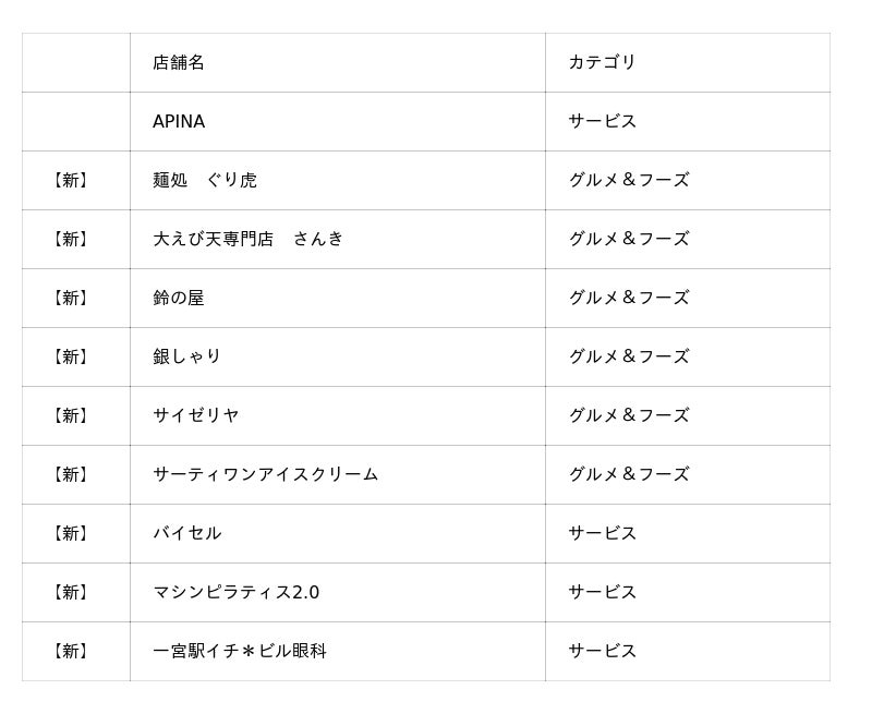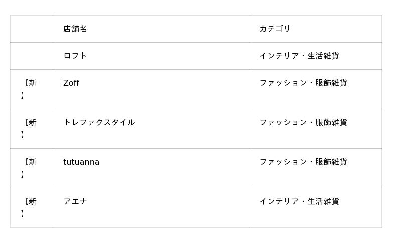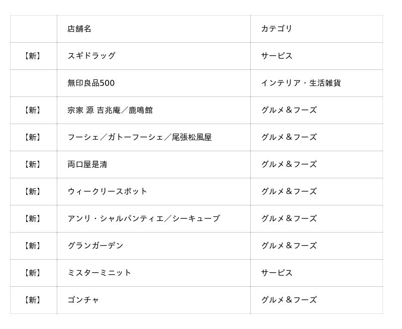 入居テナント一覧 ※【新】:今回新しく発表したテナント