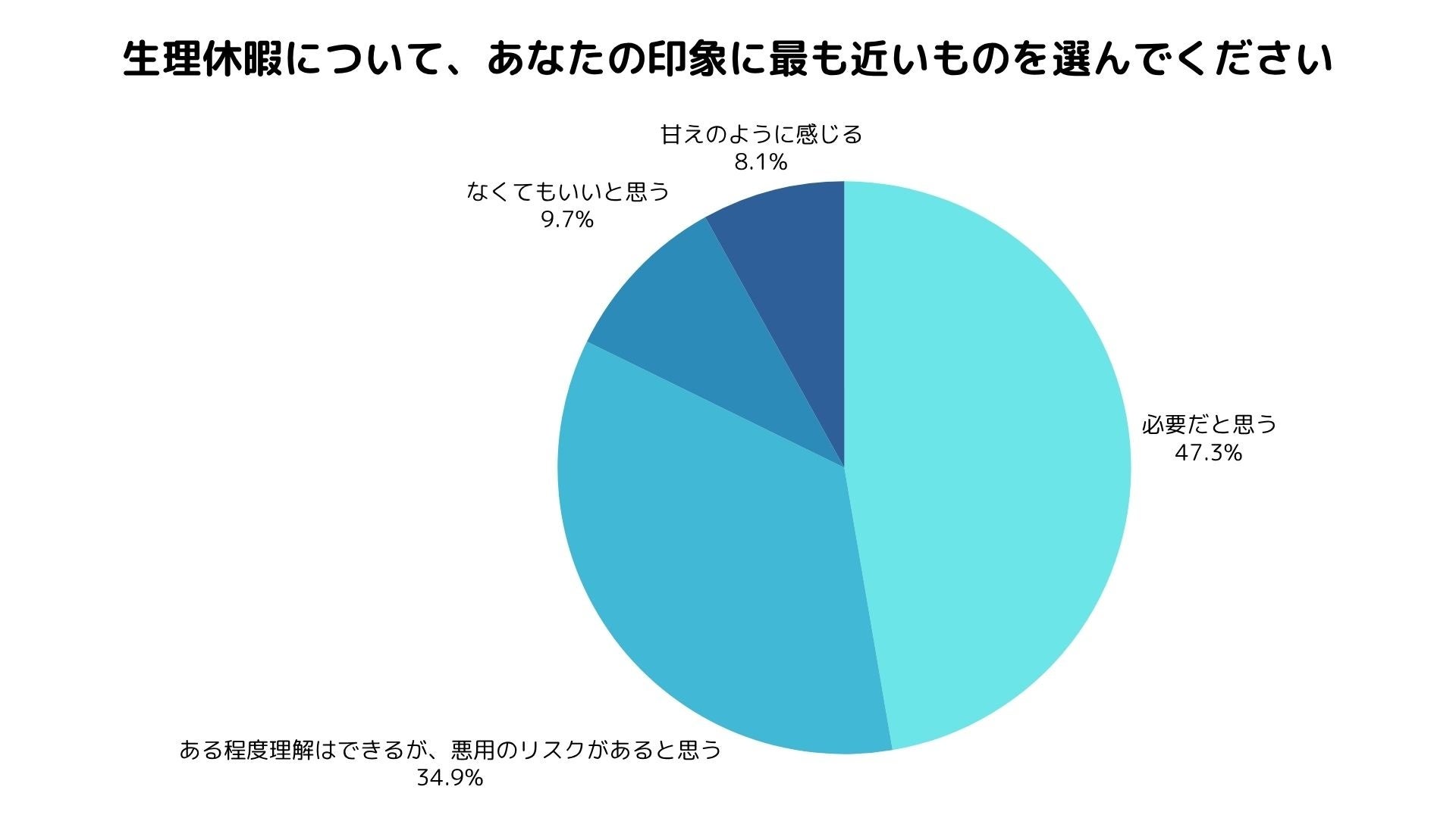 生理休暇について男性に印象を聞いたところ、「必要だと思う」と回答した人が47.3%で最多となりました。