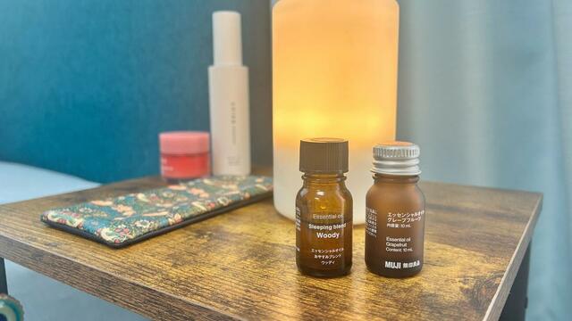 無印のアロマディフューザーと一緒に使うことで、自然と眠りのスイッチが入る、そんな私の夜の定番アイテムです。