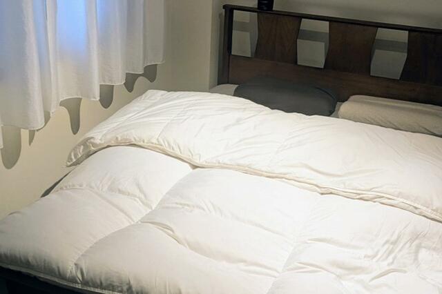 とにかく軽く、一度使うと手放せない心地よさ。縫い目から熱を逃がしにくい二層式キルト構造で、高い保温力を実感しています。真夏を除くほとんどのシーズンに使え、真冬は毛布と併用すれば十分な温かさなんです。
