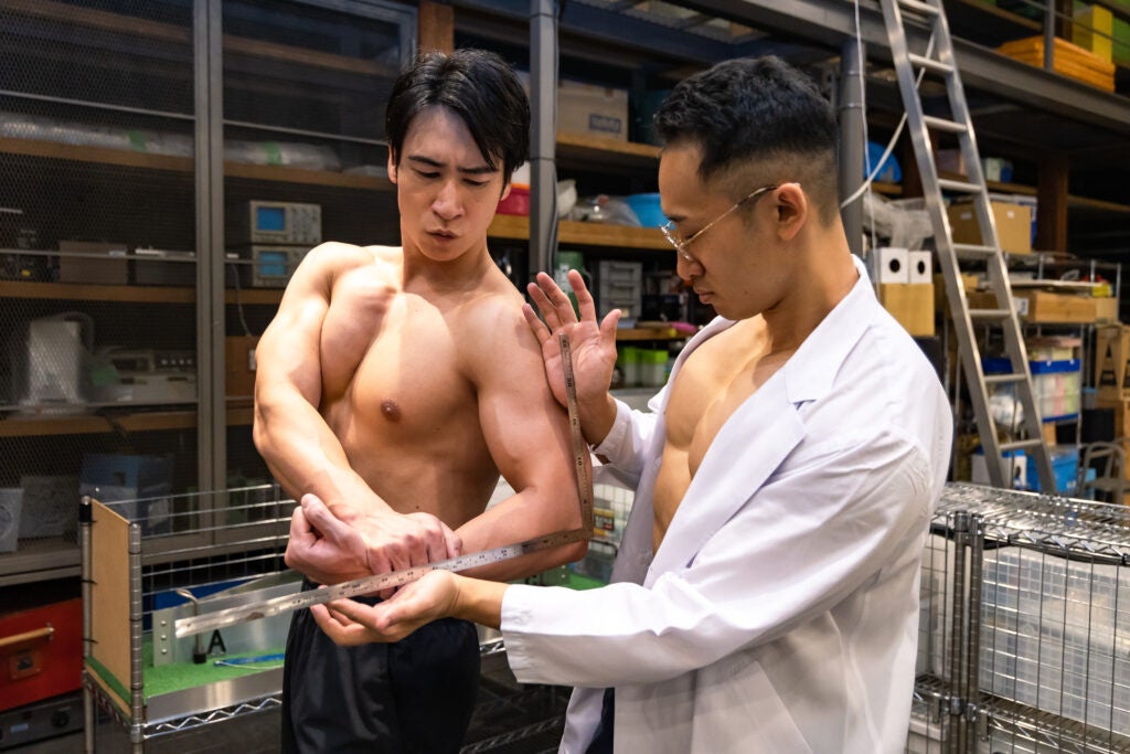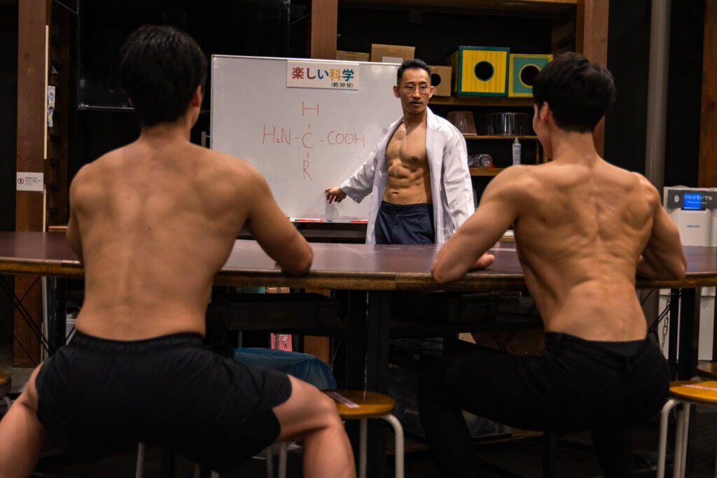 「アミノ酸の分子構造を体に叩き込むマッチョ」