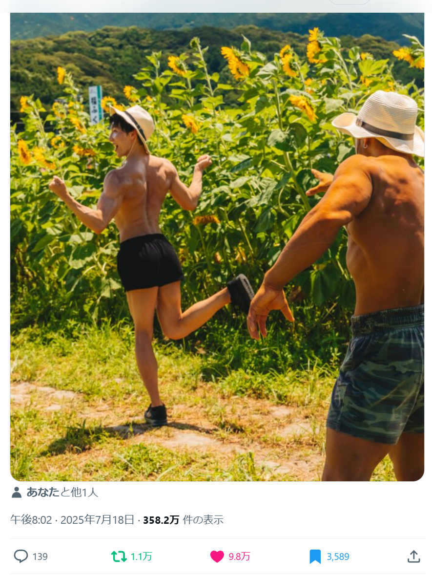 「ひまわり畑でマッチョをつかまえて」(9.8万いいね)