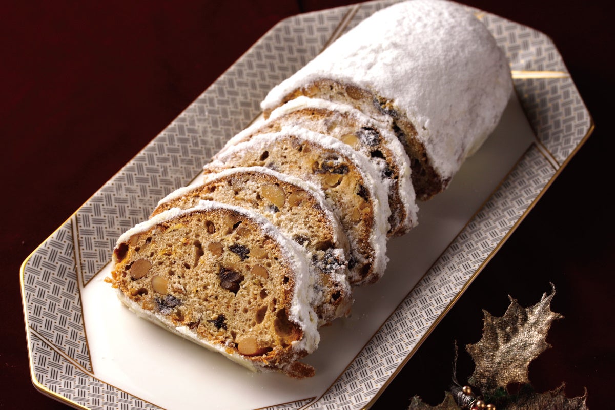 クリスマスシーズンに少しずつスライスして食べる、西欧の伝統菓子『シュトーレン』。7種類のドライフルーツと3種類のナッツを半年間ラム酒に漬け込んで、しっかりと熟成させました。