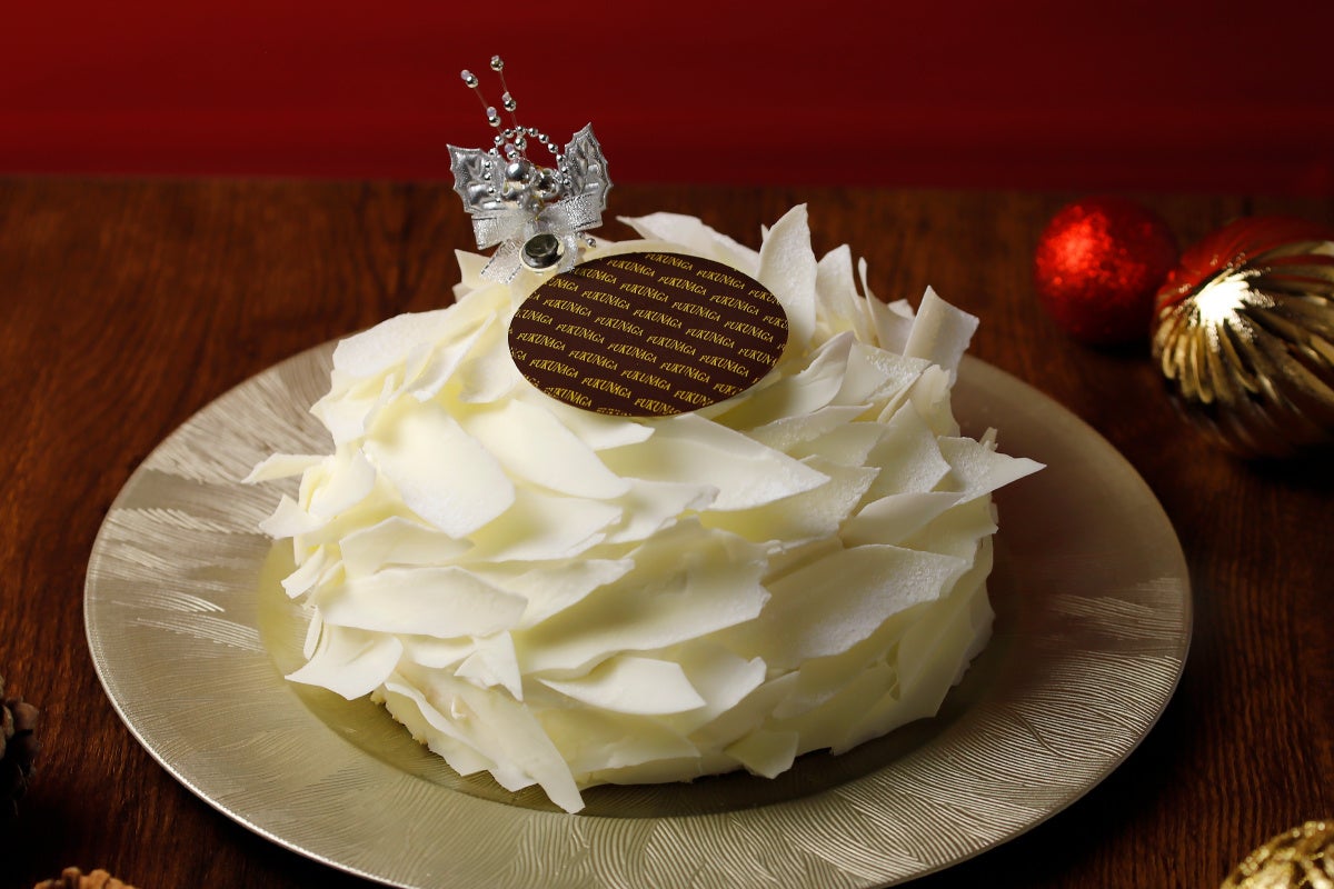 ベルギー産のホワイトチョコレートの羽をまとわせて華やかなクリスマスを演出。大人数で楽しめるプレミアムケーキです。
