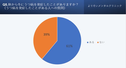 その結果、約61%の方が秋から冬に発症したと答えました。他の季節に比べてうつ病を発症しやすいと分かります。