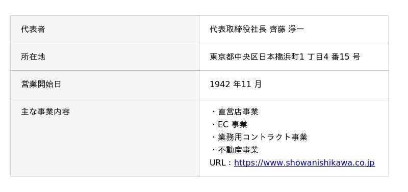 昭和西川株式会社( 以下、昭和西川) が直接運営する3 店舗での販売取次を、