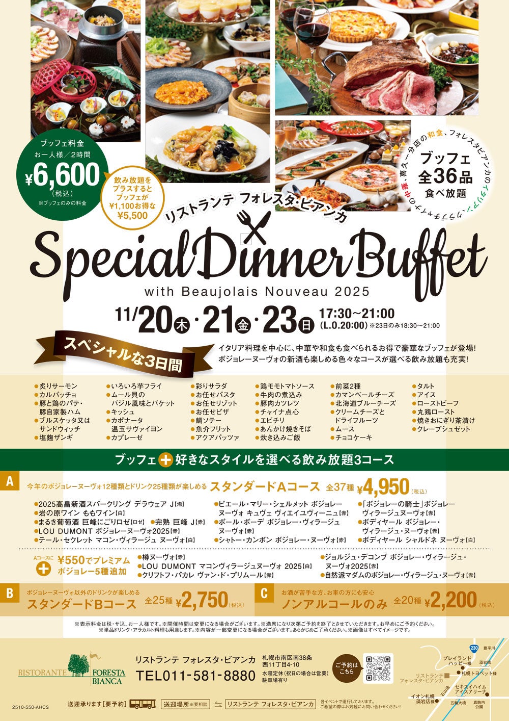 2025リストランテ フォレスタ・ビアンカ スペシャルビュッフェ開催日: 2025年11月20日(木)、21日(金)、23日(日)
