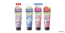 「ディアフローラ オイルイン ハンド&ネイルクリーム」は、4種の香りそれぞれをイメージして、シンデレラ、オーロラ姫、白雪姫、ラプンツェルと、花のリースをあしらったパッケージデザインを新たに描き起こしました。