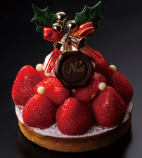 タルト台の中はアーモンドクリームが敷き詰められ、その上にコクのあるカスタードクリームを口当たりの軽いシャンティークリームが覆います。贅沢に飾られたストロベリーがフェスティブな気分を盛りあげます。
