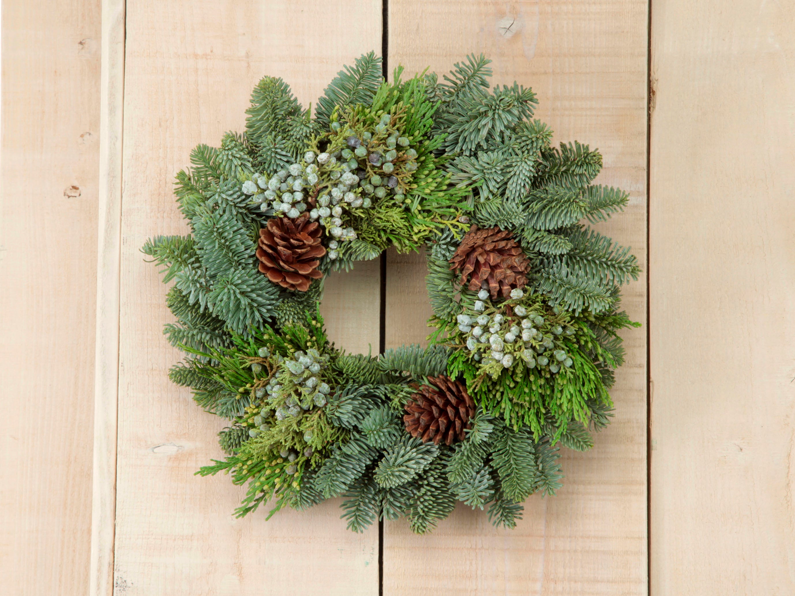 アメリカ・オレゴン州の農園で栽培し、熟練の職人が手作りした毎年人気のモミのフレッシュリース。
