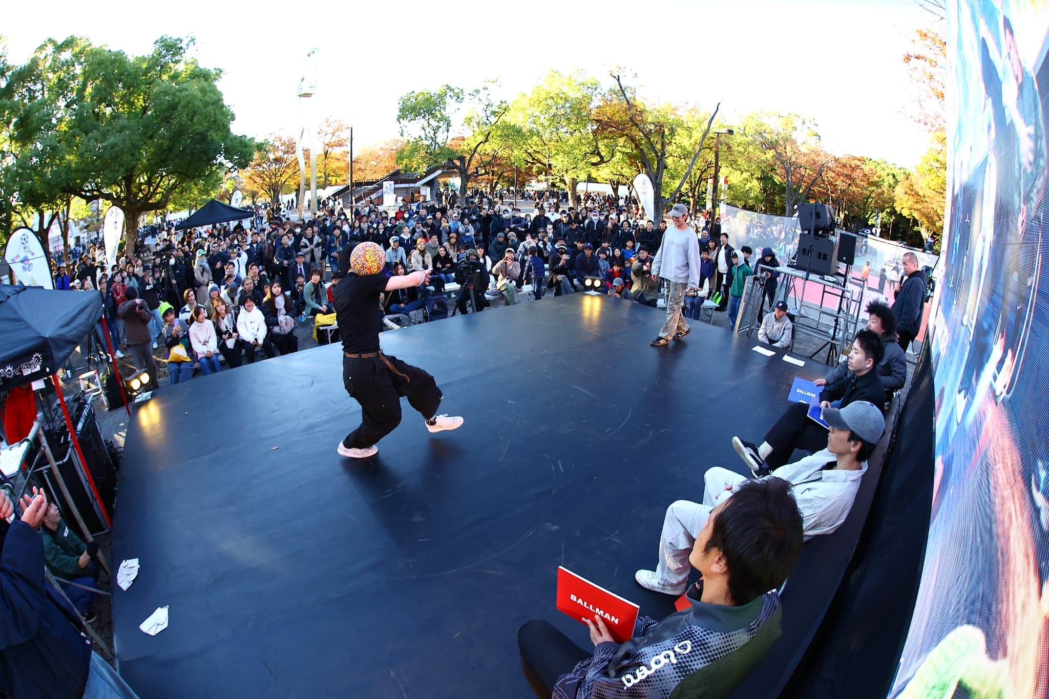 予選を勝ち抜いた2名が、大型ビジョン前でエキシビジョンバトルを実施します。