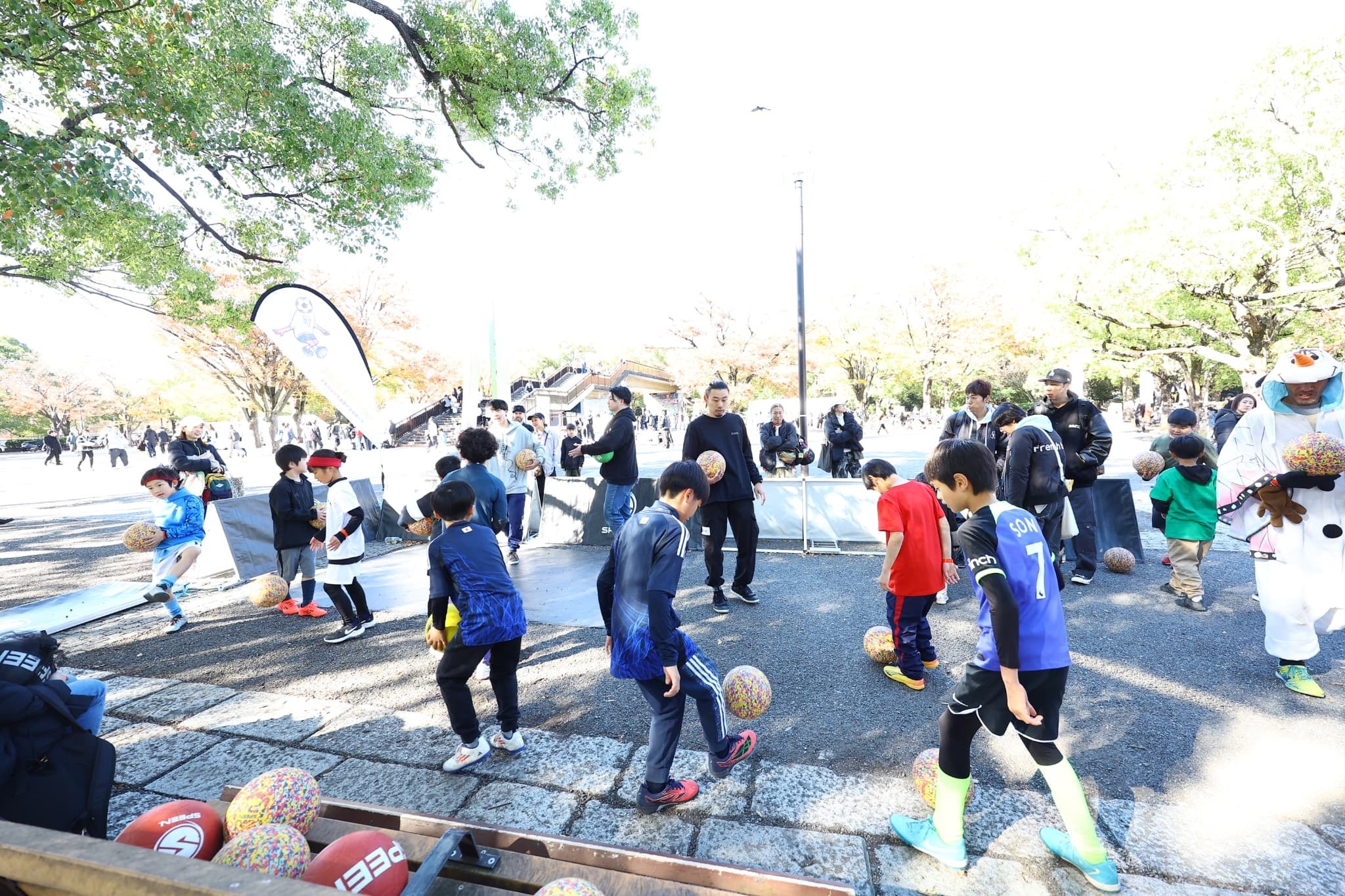現代人のスポーツ離れや、ボールあそびを制限された環境、それらの社会課題に対し、ボール1つで「自分の場所」を見つけることができる楽しみ方を提案します。代々木公園ケヤキ並木にその日限りのサッカーコート5面と特設ステージが出現し、フットボールを通じて大人も子供も夢中になれる「場所」を提供します。1人で来ても、仲間と来ても、フットボールを通じてできる新しい仲間と1日中楽しめます。