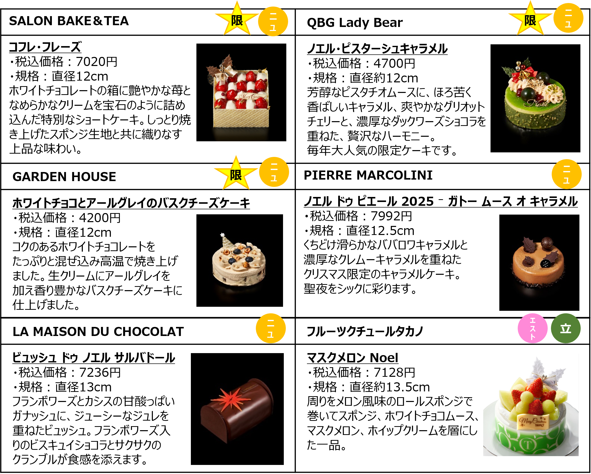 株式会社ルミネ(本社:東京都渋谷区)は、2025年のクリスマスシーズンに向け、ルミネ・ニュウマン各館にてバラエティ豊かなクリスマスケーキを展開いたします。