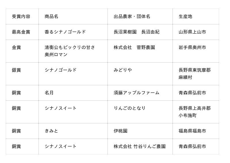 - 入賞:サンふじ/if-imaifarm今井農園(青森県平川市)