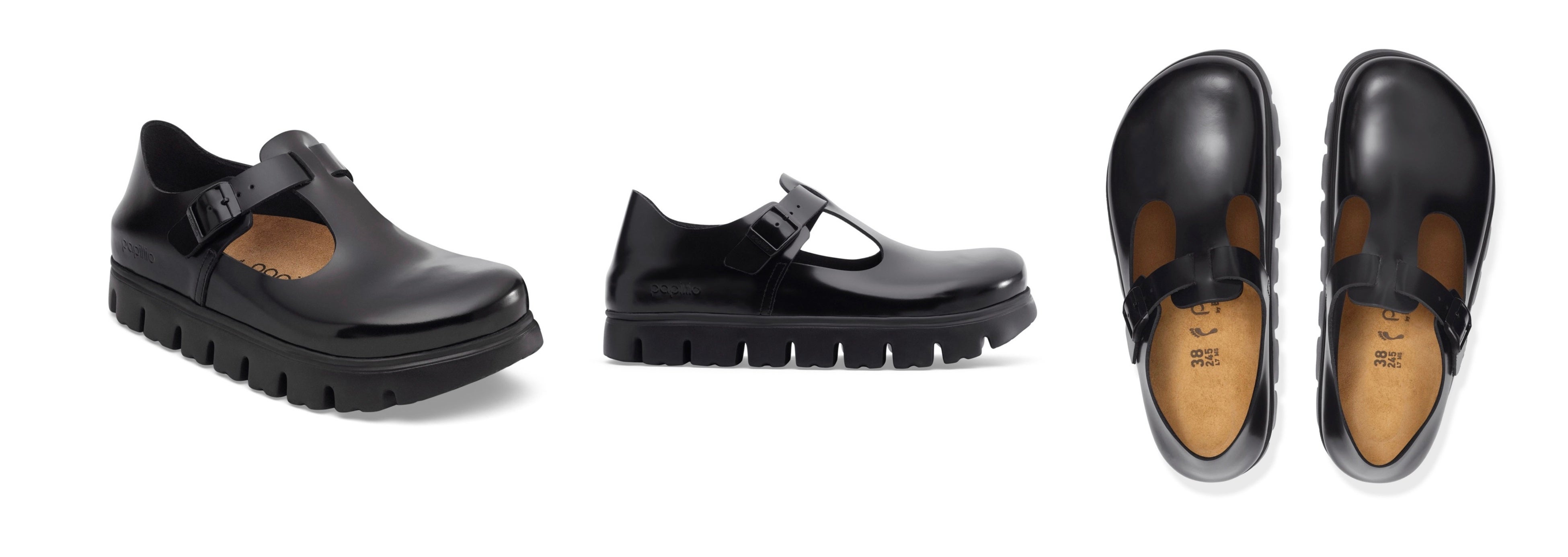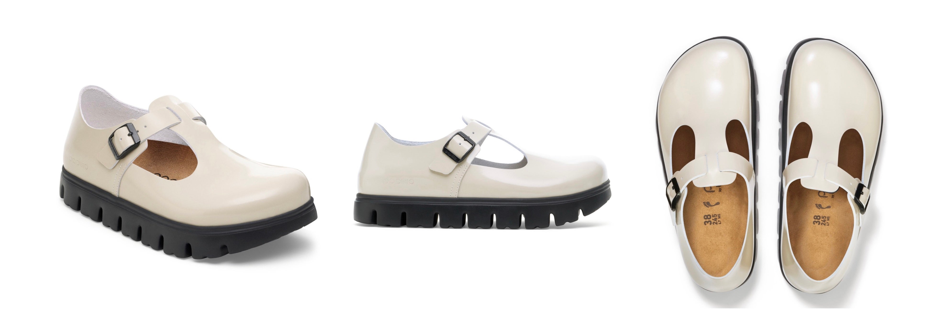 BIRKENSTOCKのサブラインPapillio by BIRKENSTOCK (パピリオ バイ ビルケンシュトック)から発売されるPARIS CHUNKY(パリス チャンキー)は、Papillioらしいプラットフォームのアウトソールと、光沢感のあるハイシャインレザーでアーカイブの人気モデルをアップデート。クラシカルな趣をモダンに昇華させ、メリージェーンとローファーをミックスさせたような、絶妙なバランスに仕上げています。