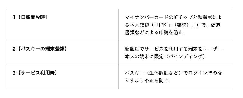 これにより、口座開設時から日常の利用に至るまで、一貫した当人性の担保と不正利用の防止を実現します。