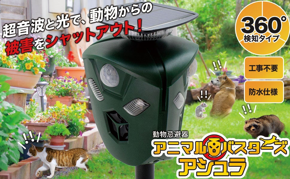 設置性が向上した新しい固定バー採用の「アニマルバスターズ アシュラ」で、大切な庭や畑を動物の被害から守りましょう。