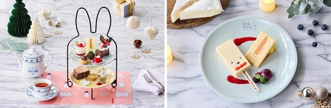 左:ミッフィーのクリスマスアフタヌーンティー、右:ミッフィーのチーズケーキバープレート