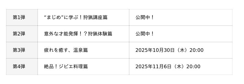 で展開中の「まじめなえひめ研究所」YouTubeチャンネル(https://www.youtube.com/channel/UCc5DAxVc0ypMwqXpiwb_rZw)の新作映像『【ネルソンズ・和田まんじゅうの愛媛狩猟体験#3】イノシシのマンガ肉に食らいつく!?』を2025年10月30日(木)20:00より公開いたします。