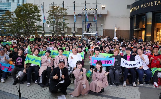 『あ~ちゃん ちゃあぽんの! ”West Side Story”』は、Perfumeのあ~ちゃんと、その妹でタレントの西脇彩華が姉妹ならではのトークをお届けしている番組です。今回、2年連続となる「基町クレド・パセーラ」(広島市)での公開収録とクリスマスツリーの点灯式を開催。「15人くらいだったらどうしよう・・・」と事前に話していた2人。しかし当日は、観覧エリアに延べ2,000人の観客が詰めかけ、広場は熱気と笑顔であふれました。