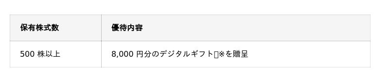 当社は、株主の皆様からの日頃のご支援に深く感謝するとともに、当社株式への投資の魅力を高めることで、より多くの方々に当社株式を保有していただくことを目的として、株主優待制度を変更することといたしました。今回の変更では、利便性と選択肢の幅を重視し、従来のポイント制度から株式会社デジタルプラス(証券コード:3691)が提供するデジタルギフト(R)へと変更いたします。なお、株主還元につきましては、配当含め、経営における最重要課題の一つと考えております。今後も安定かつ充実した株主還元の継続に努めてまいります。