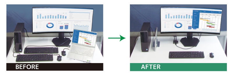 導入準備はパソコンと機器を接続するだけで完了。操作するパソコンはボタンひとつで切り替えることができます。