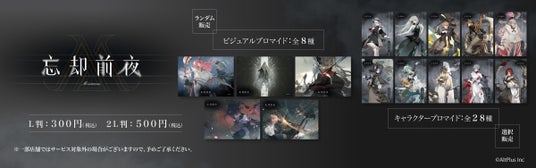 2025年10月14日から約3ヵ月間の期間限定で、本作『忘却前夜』のオリジナルブロマイド(以下「本ブロマイド」)を全国のローソン・ミニストップ店舗内のマルチコピー機にて販売しております。ゲーム内の名場面を繊細に再現した「ビジュアルブロマイド」(全8種)と、お気に入りのキャラクターの魅力を存分に堪能できる「キャラクターブロマイド」(全28種)を展開中です。