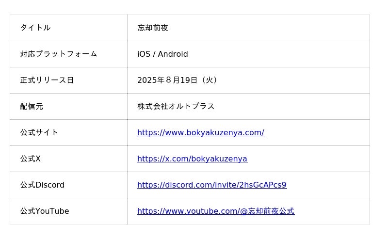 以上のほか、本作の概要につきましては、オルトプラスが8月19日に配信した以下のプレスリリースにてご確認ください。