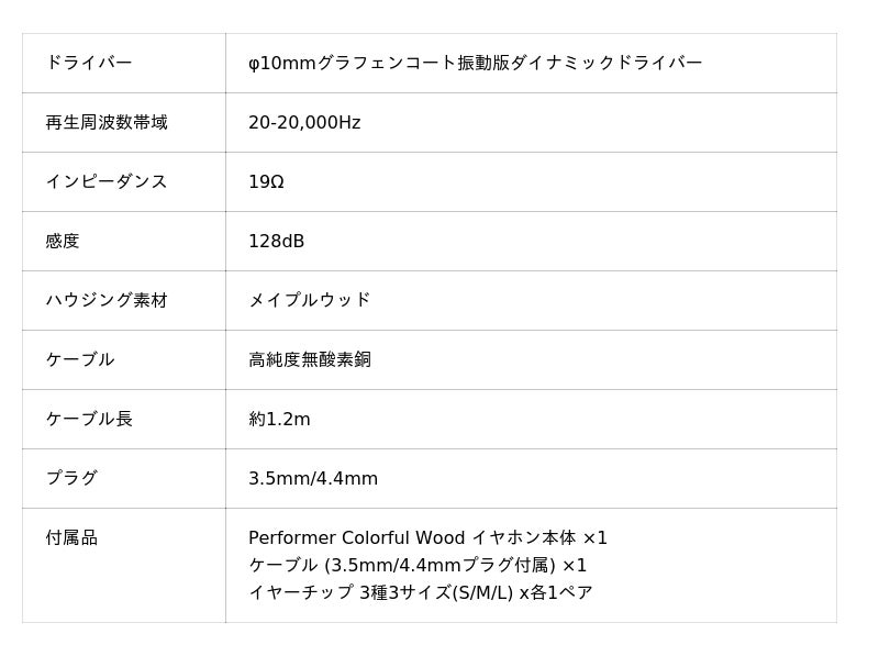 Performerの良さをそのままに、ハウジング材質を木に変更することにより、一味違った音楽体験をお楽しみいただけます。