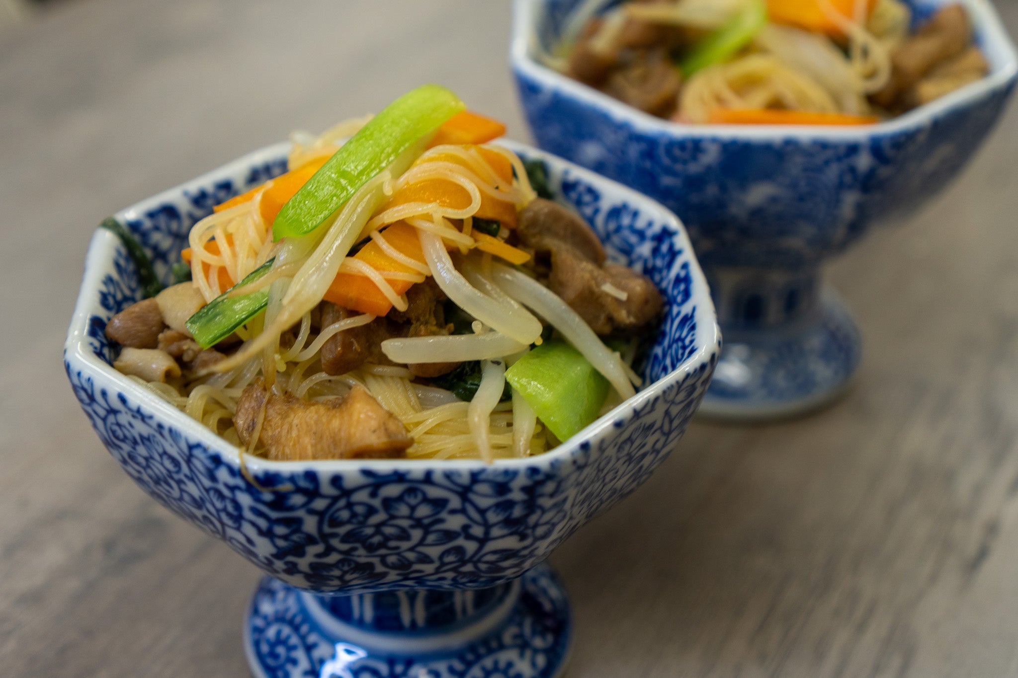 野菜たっぷりだし糀の焼きビーフン 509円(税込)・生でも美味しい小松菜がメインの焼きビーフン