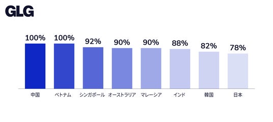国別にみると、中国とベトナムでは、回答者のすべてが「不安定な貿易・関税政策」を選択した一方、日本の回答者のうち、「不安定な貿易・関税政策」を選択した人の割合は78%にとどまりました。