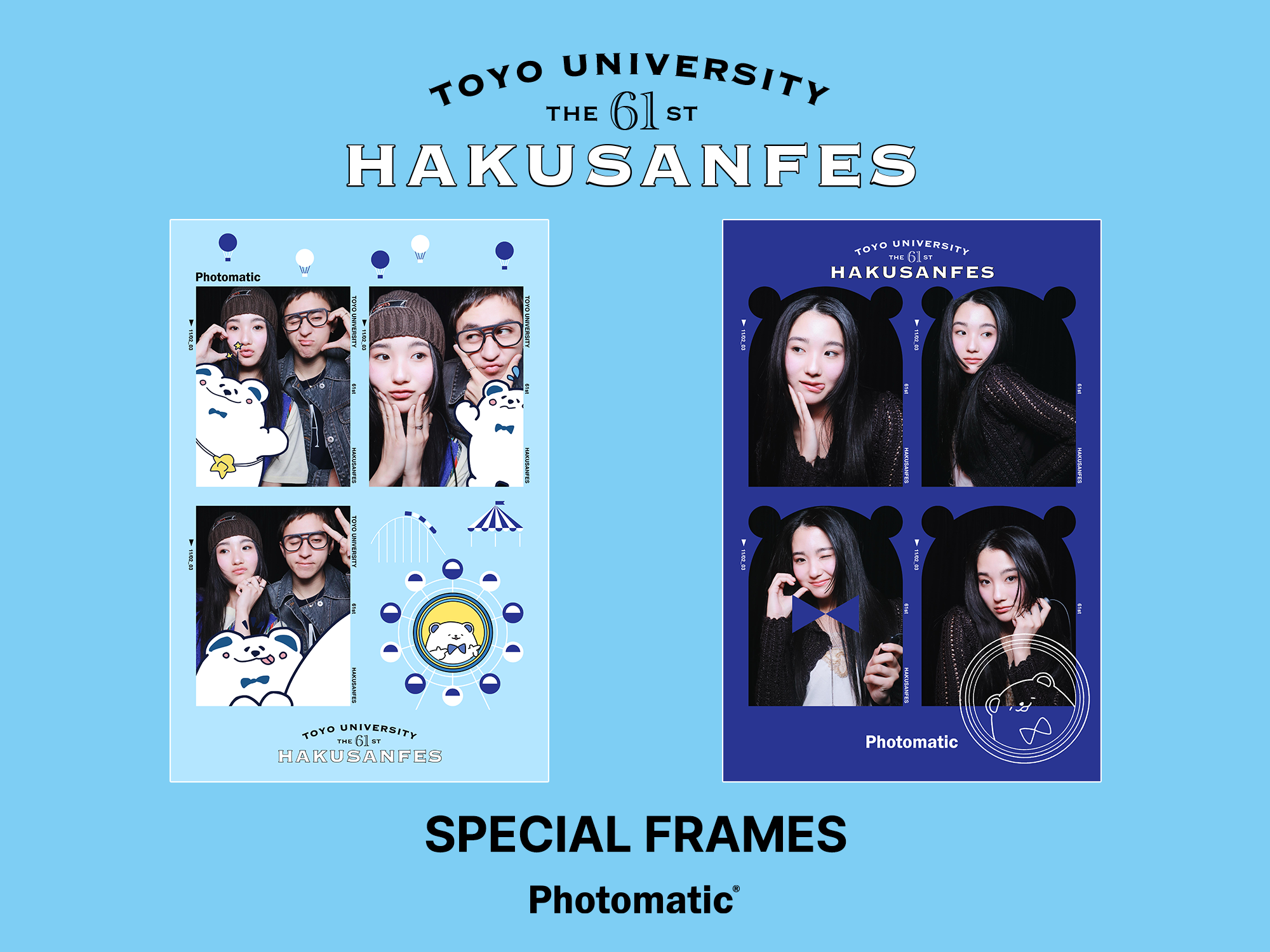 2025年11月2日(日)・11月3日(月・祝)の2日間で開催される東洋大学 第61回白山祭に合わせて、イベント限定のオリジナルフレームで撮影できるフォトブースを2025年10月26日(日)から設置しています。白山祭のマスコットキャラクター「しろやまさん」がデザインされたキュートなオリジナルフレーム2種を販売。撮影した画像は、プリントされるほか撮影後に表示されるQRコードからダウンロードが可能です。なお、本ブースは白山祭開催前の10月26日(日)から設置を開始します。白山祭での思い出はもちろん、キャンパスでの日常を、カタチに残る1枚の写真にするのはいかがでしょうか。