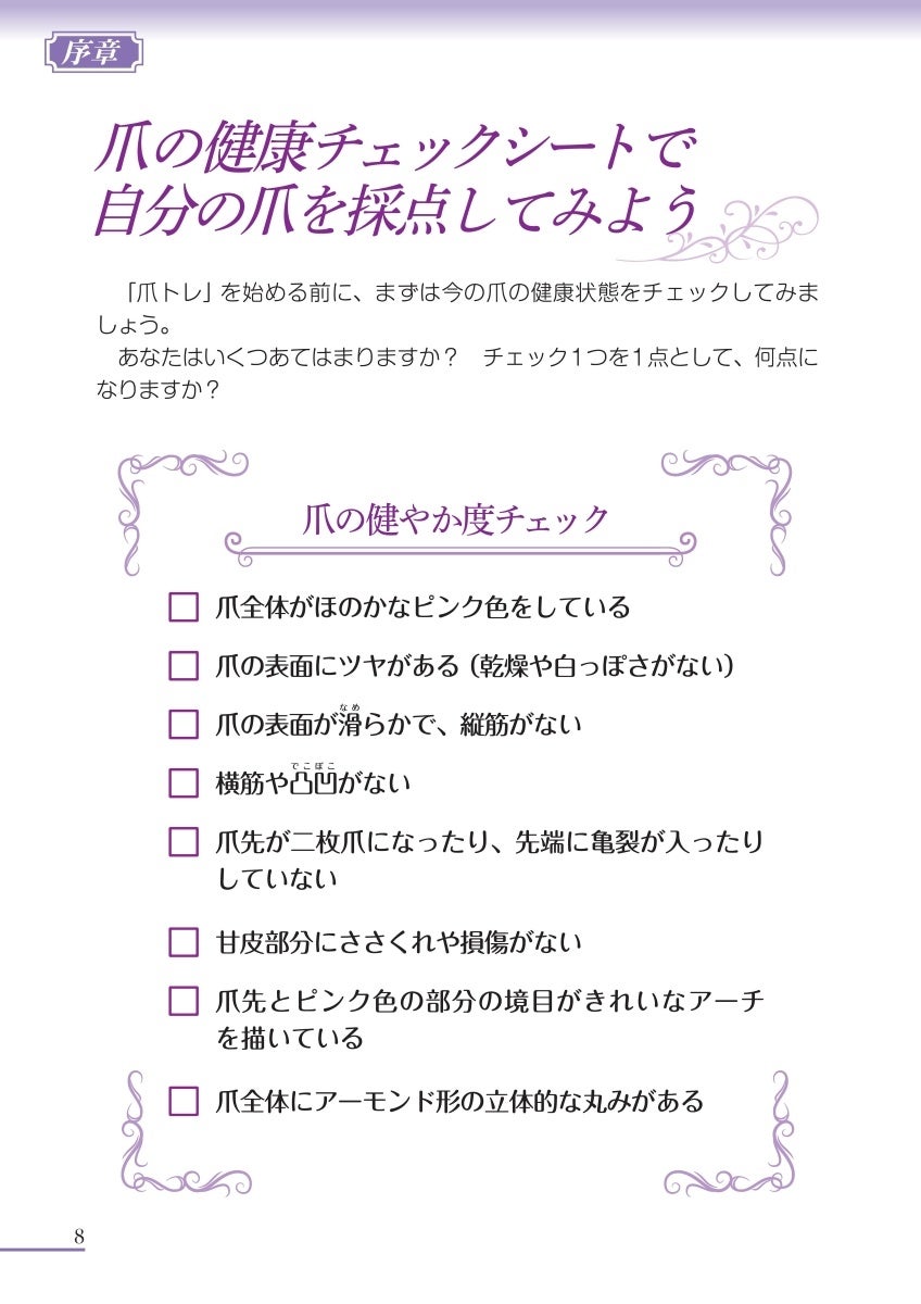 ●序章爪の構造と仕組み/爪の健康チェックシート/爪に関するQ&A ほか