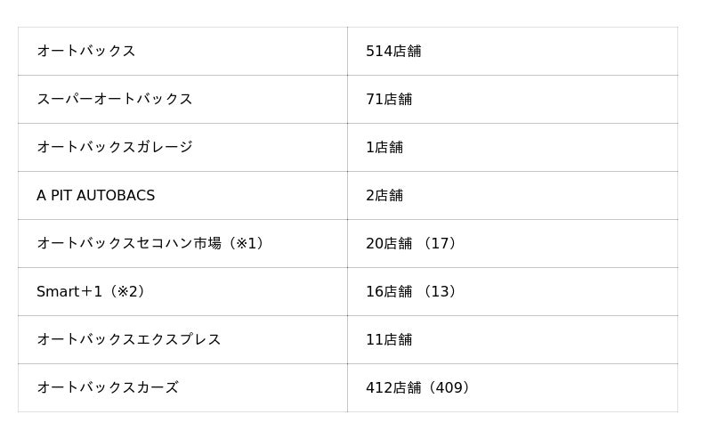 ご参考:オートバックスグループ国内店舗数 計1,047店舗