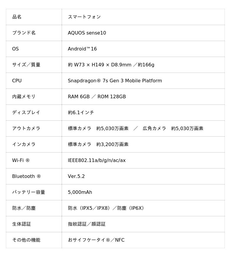 <AQUOS sense10の特長>