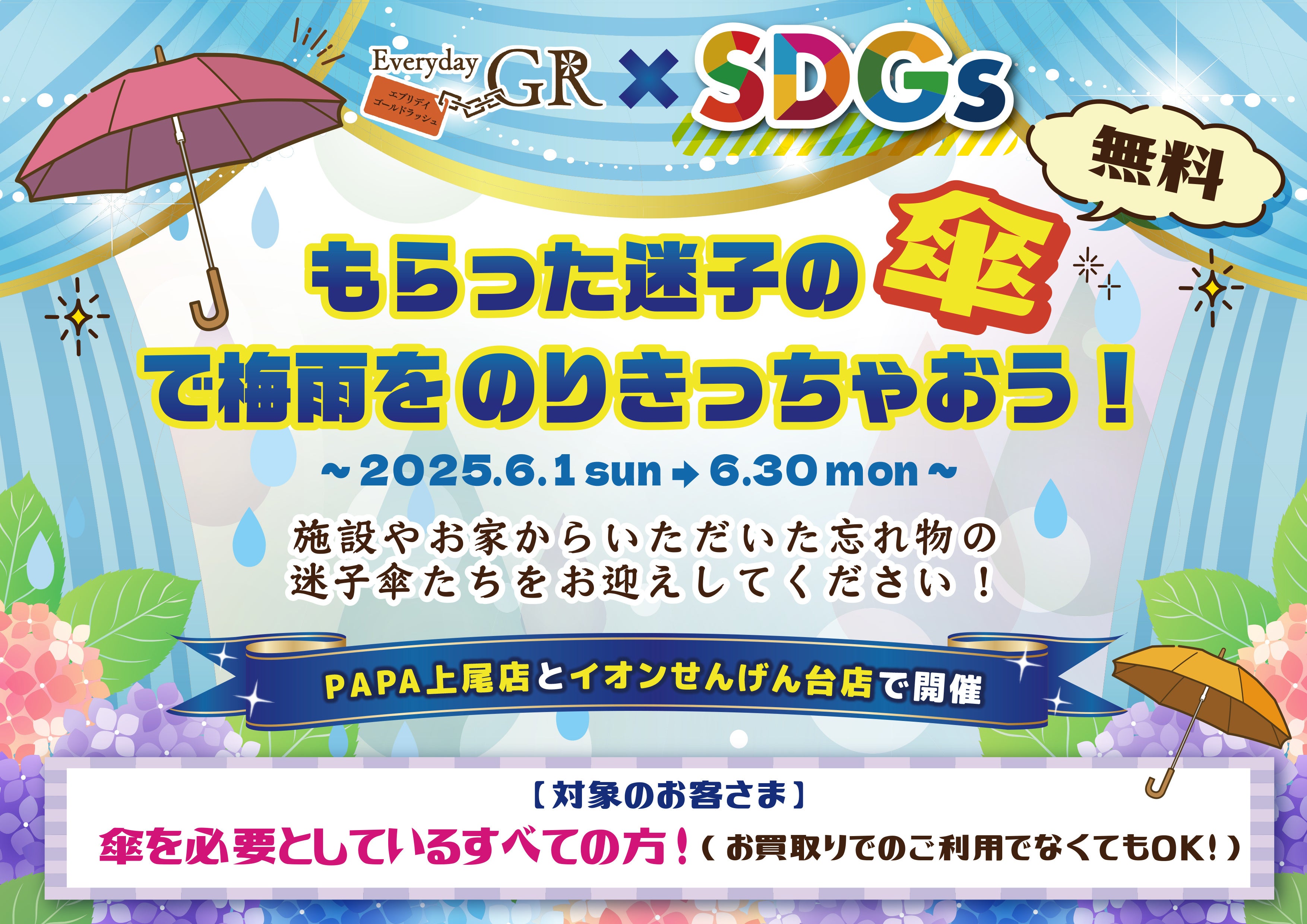 2.PAPA上尾店とイオンせんげん台店の2店舗で回収したビニール傘を無料配布。