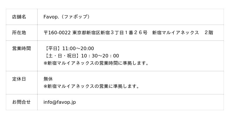 株式会社ディッジは、サブカルコンテンツアイテムを広く取り扱うグッズ専門店として新宿マルイアネックス2階に「Favop.(ファボップ)」を運営しております。