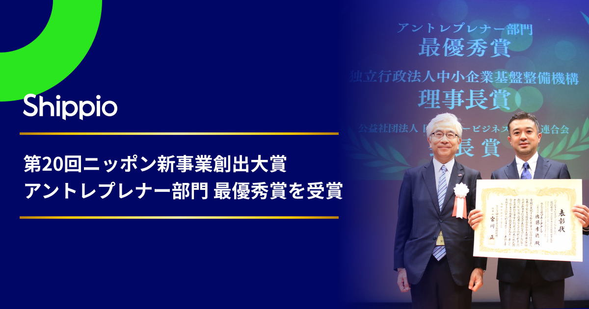 Shippioは「国際物流を、アドバンストに」をビジョンに掲げ、貿易DXを推進するShippio Platformを構築しています。荷主企業・国際物流事業者向けの各種貿易DXサービスを展開し、貿易業務プロセスの可視化・自動化・データ活用を推進しています。この度、事業の革新性と成長性を評価していただき、2025年度 第20回ニッポン新事業創出大賞「アントレプレナー部門」最優秀賞を受賞いたしました。