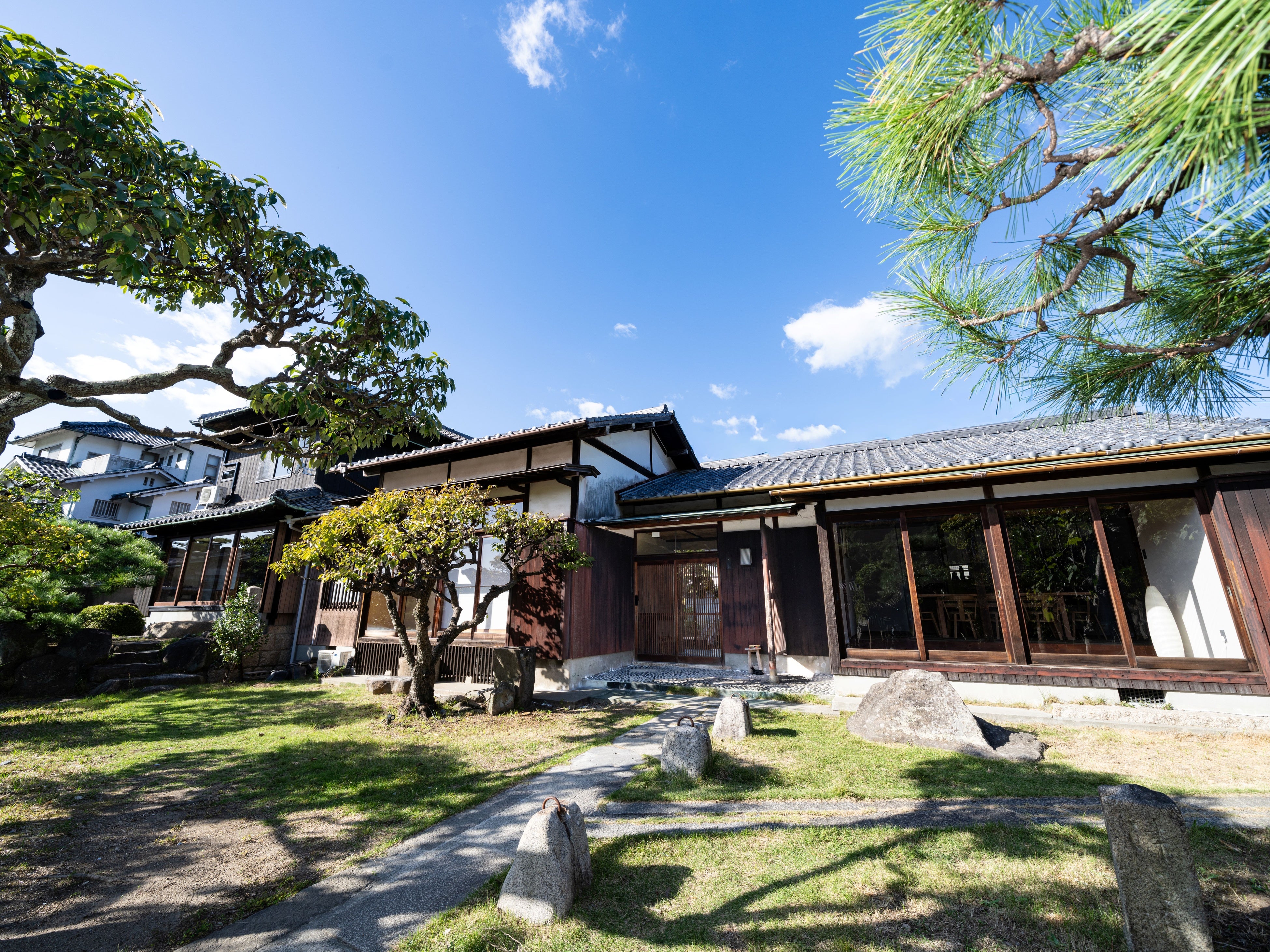名家の邸宅を一日一組限定で貸切。約925坪の敷地に日本庭園と畑、蔵BAR・半露天風呂・サウナを完備。畑では農体験も可能。港と宿の往復送迎付きでお買い物などの立ち寄りも柔軟にご対応いたします。
