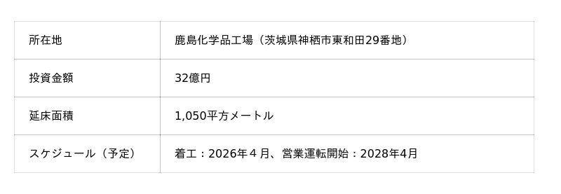 株式会社ADEKA(代表取締役社長兼社長執行役員: 城詰秀尊、本社:東京都荒川区)は、鹿島化学品工場(茨城県神栖市)に次世代EUVリソグラフィ(高NA EUV)向けMOR用金属化合物のプラント新設を決定しましたのでお知らせいたします。