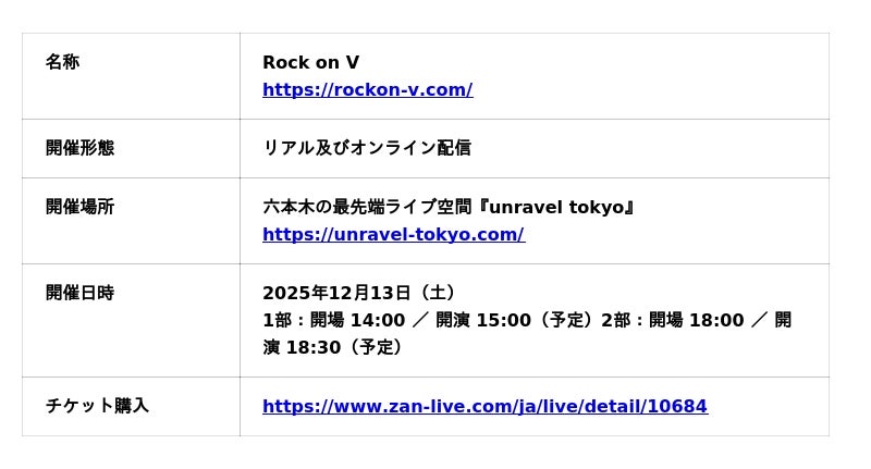 ▶ Rock on V公式サイト:https://rockon-v.com/