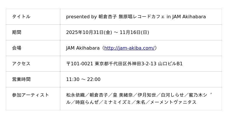 ■『presented by 朝倉杏子 無原唱レコードカフェ in JAM Akihabara』概要