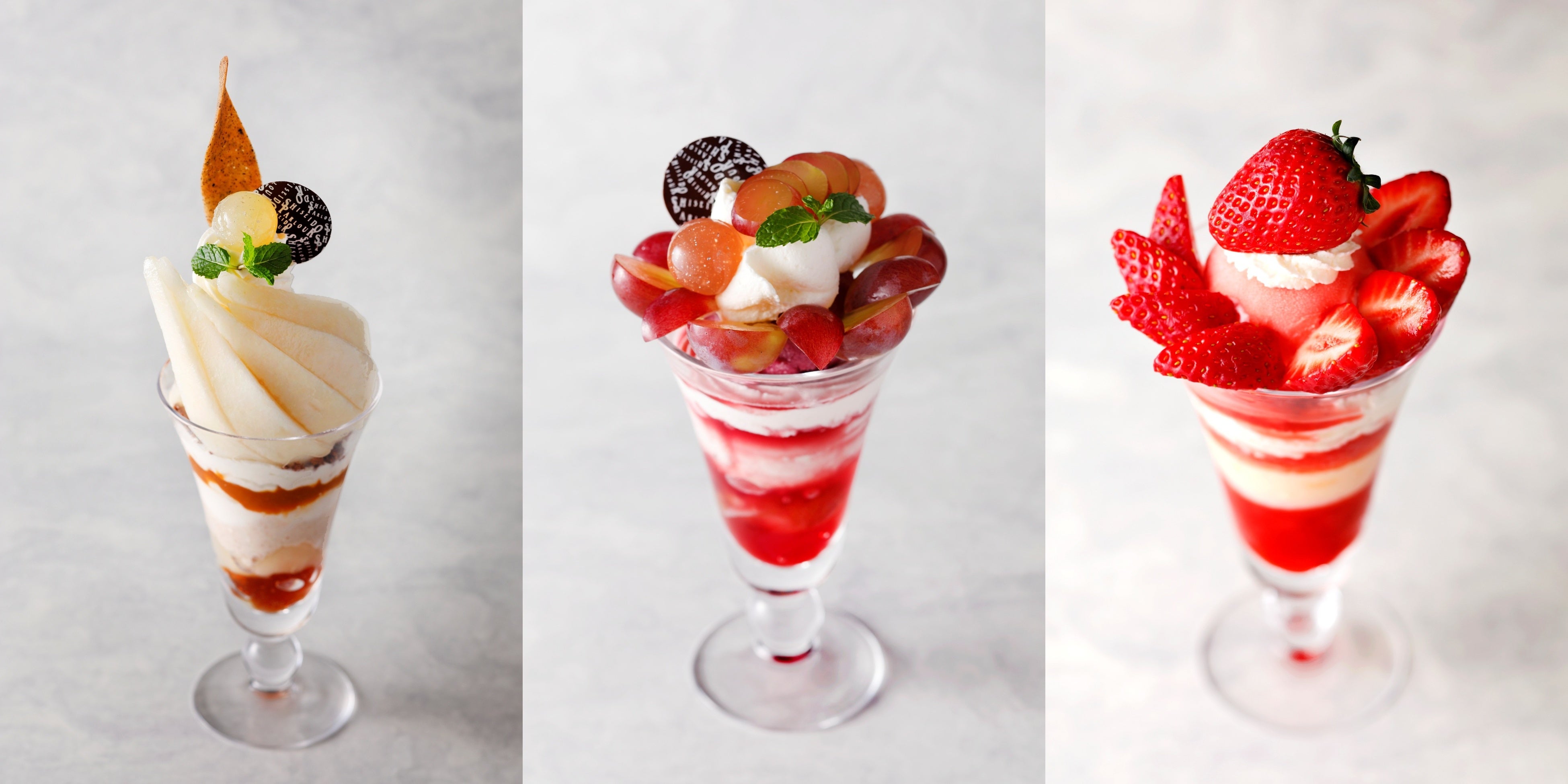 2025年11月1日(土)より、「資生堂パーラー」のレストラン各支店では、深まる秋に旬を迎えるフルーツの魅力を存分に楽しめる、3種のフルーツパフェを展開いたします。