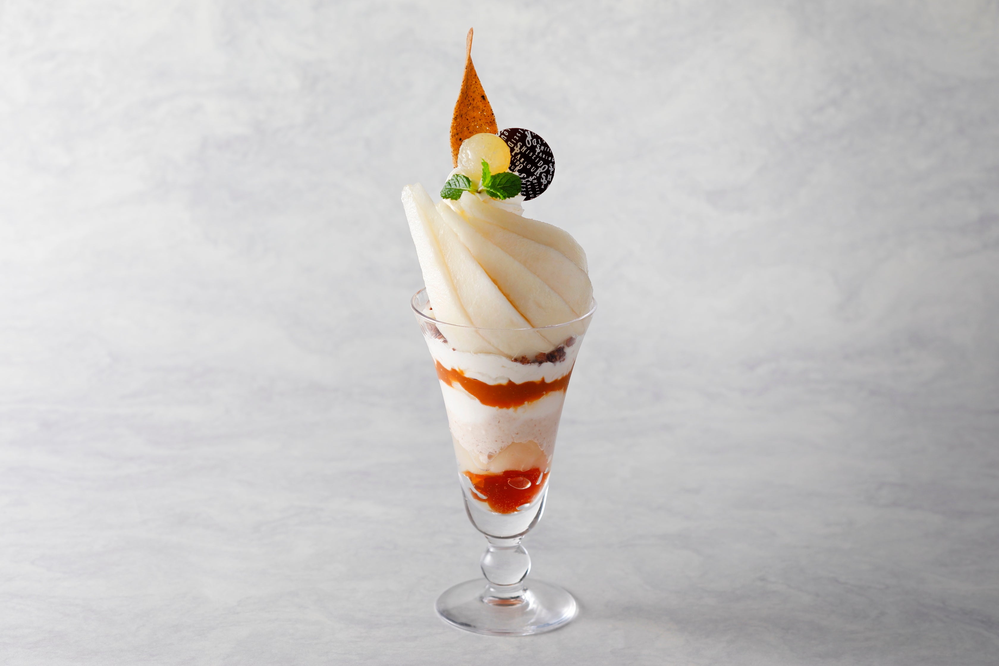 ◆山形県産ラ・フランスのパフェ山形県産の上質なラ・フランスを贅沢に使用したパフェ。気品ある香りと豊かな甘味が、口の中でなめらかに広がります。