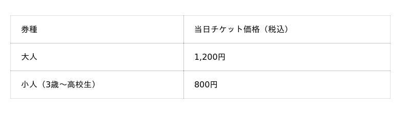 ※2歳以下無料、保護者要同伴で、保護者1名につき最大2名までご入場可能(同伴者もチケット購入が必要です)。