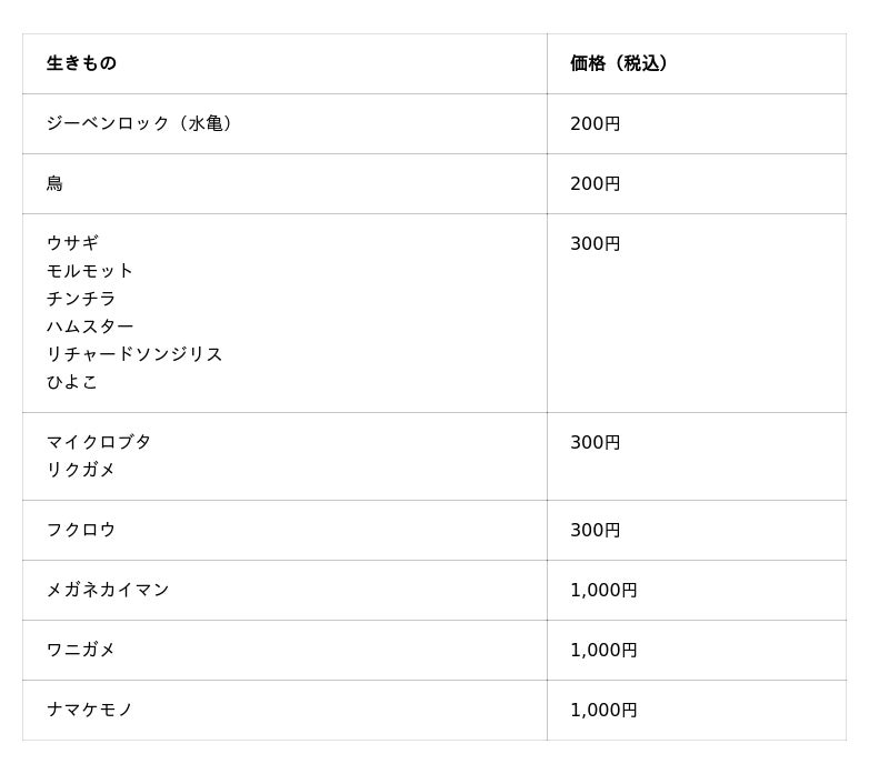 ※生きものの体調により餌を食べないことがある事を予めご了承ください。