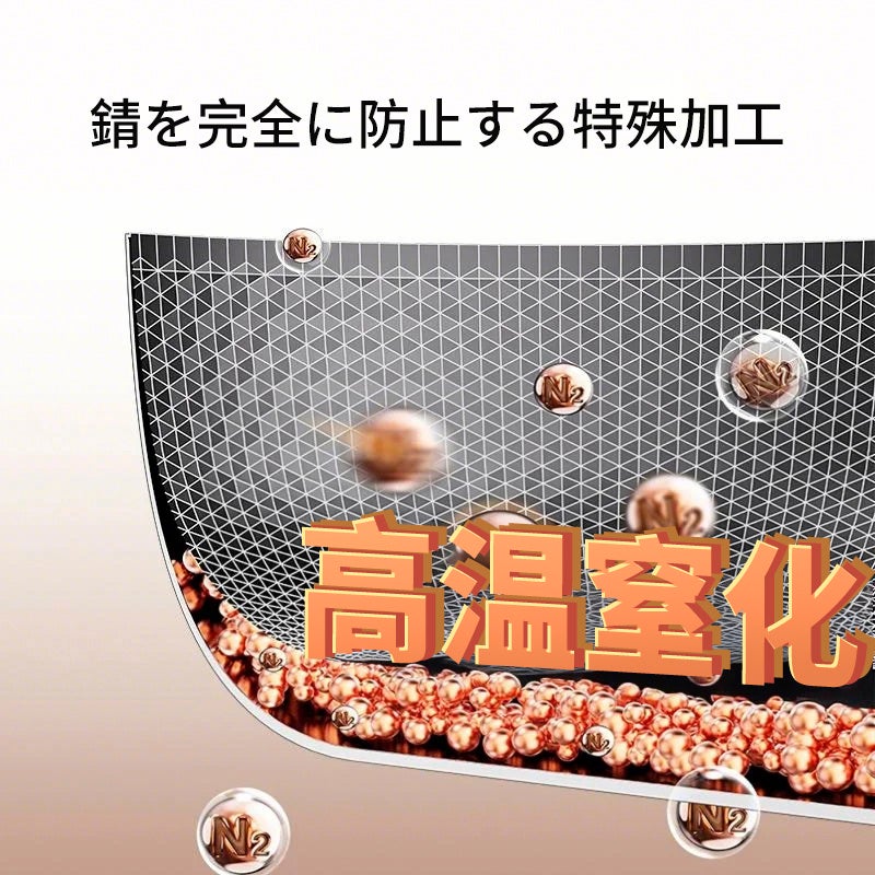 高温窒化処理されて錆びにくい、耐久性も向上!ノンコーティングなのに焦げ付きにくい。